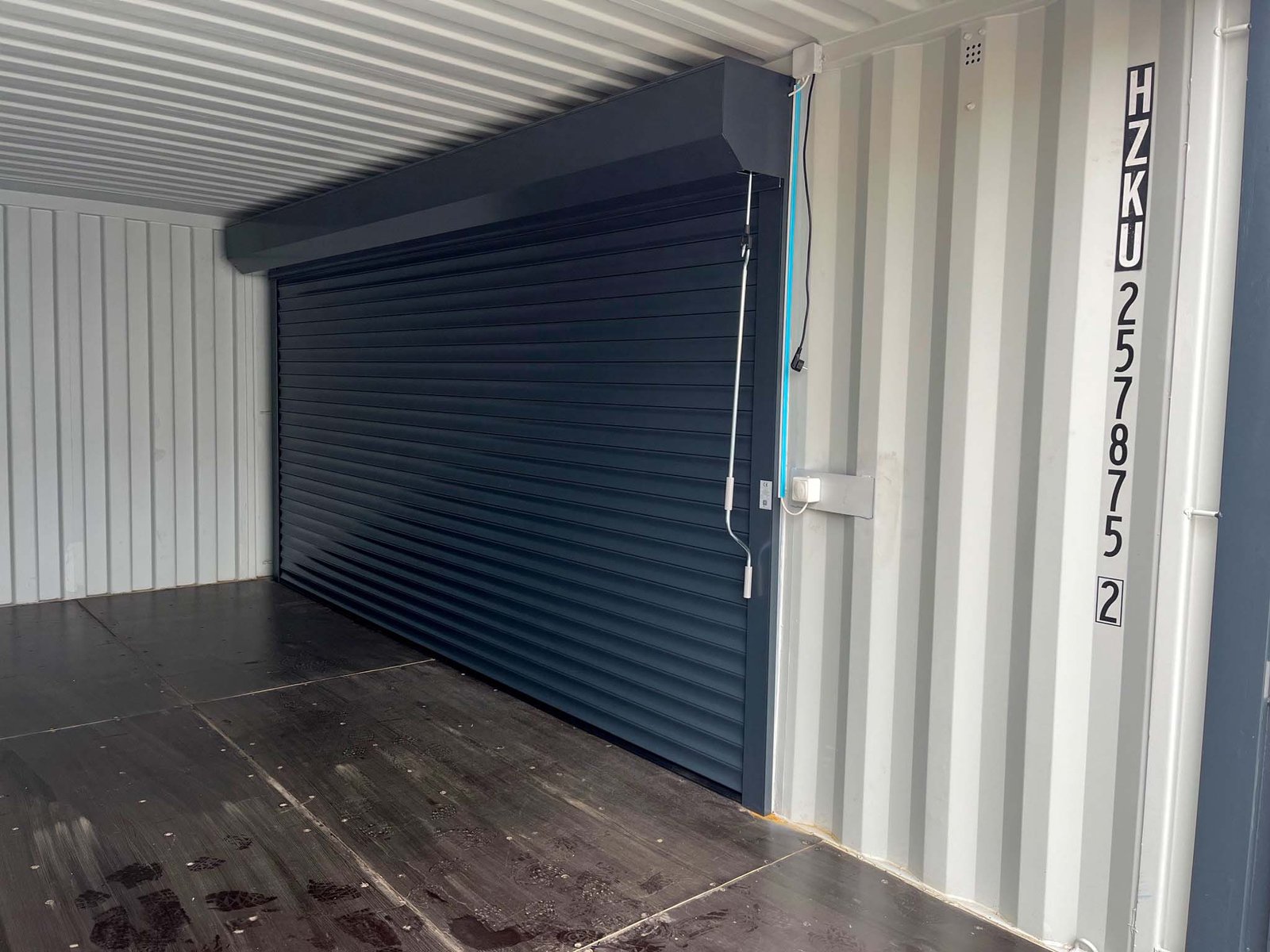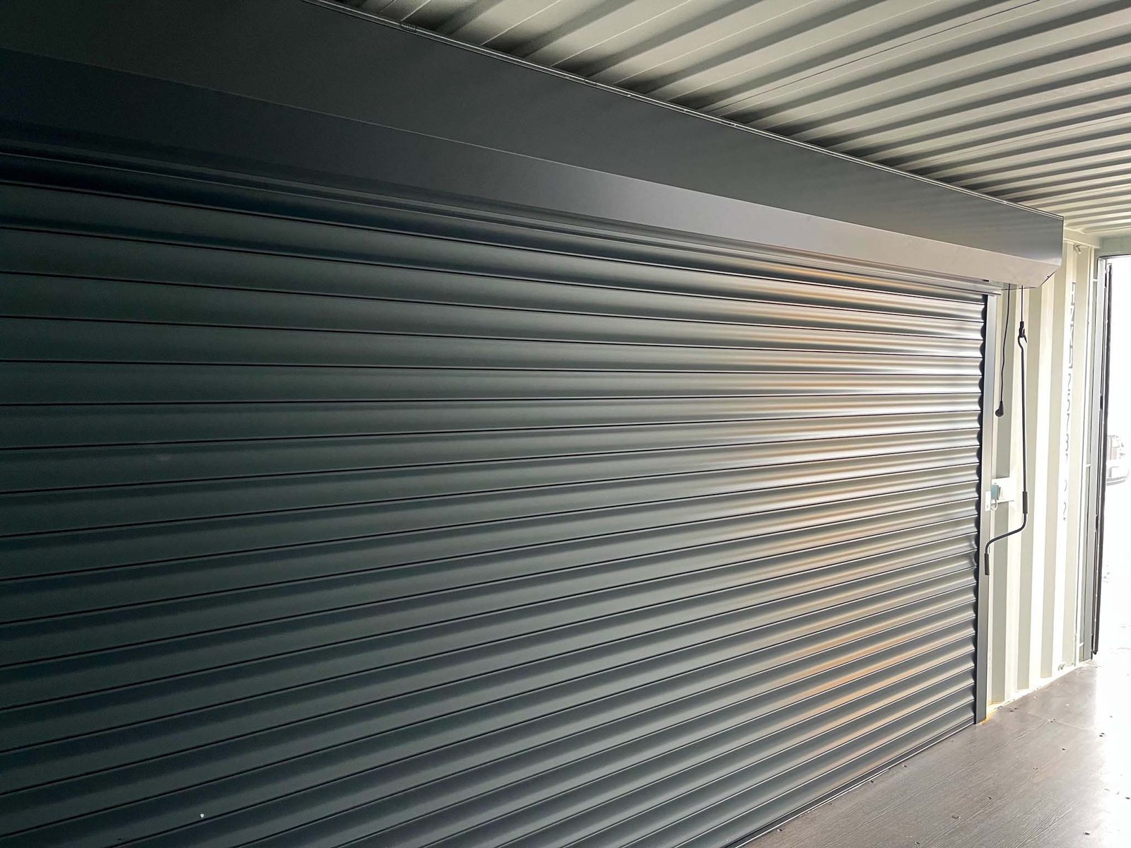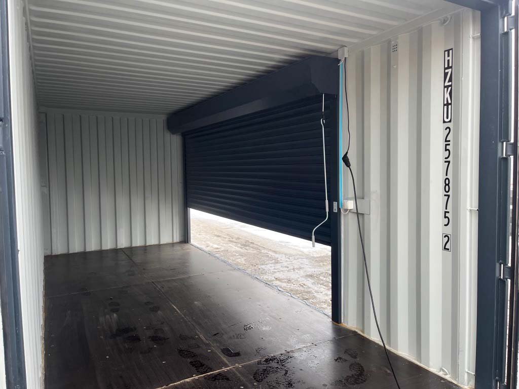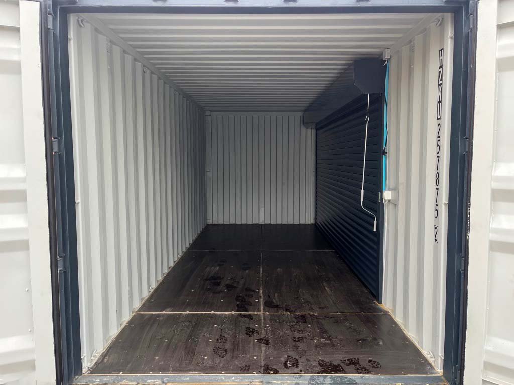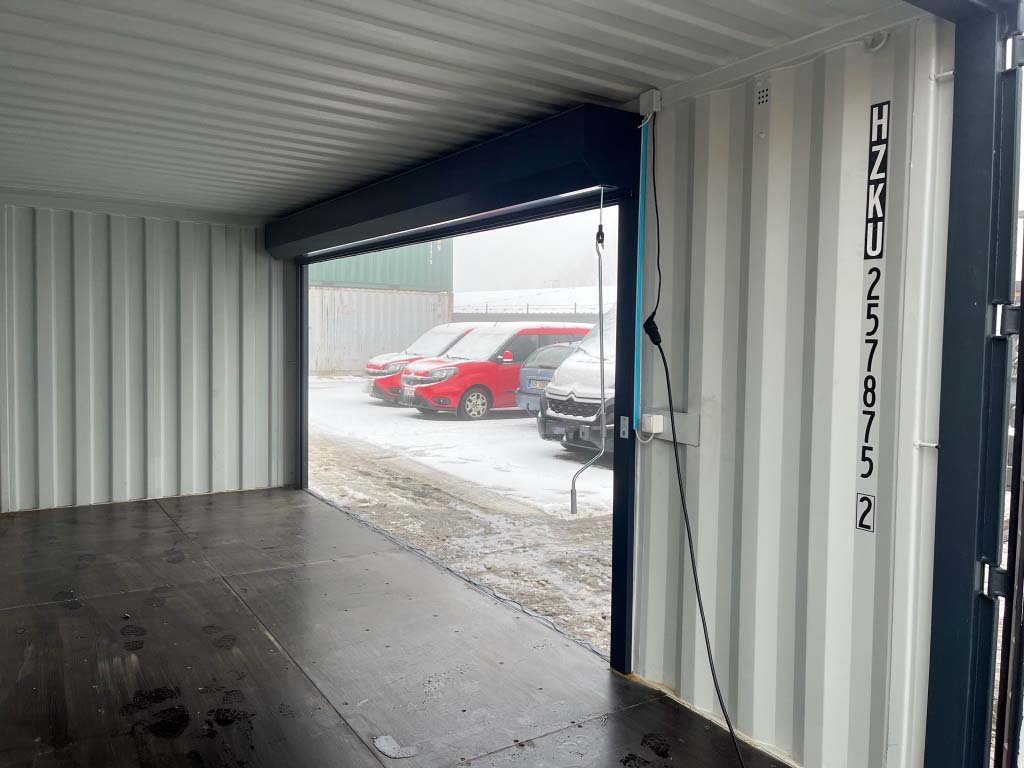 This container is equipped with a roller shutter (Minirol) and an access door (Hörmann) . Due to the modifications, it no longer meets the requirements for international transport and is not CSC-certified , but is ideal for stationary or local use.