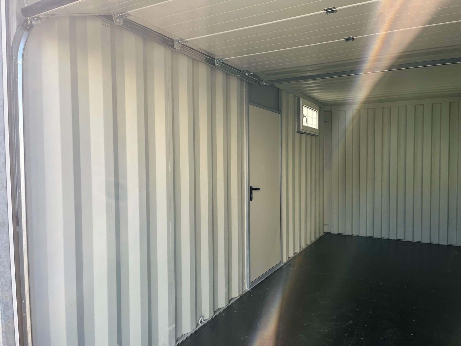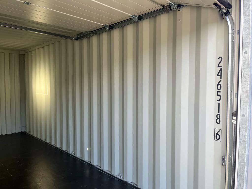 20ft storage container with motorized sectional door – safe and modern storage space