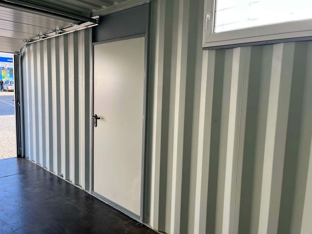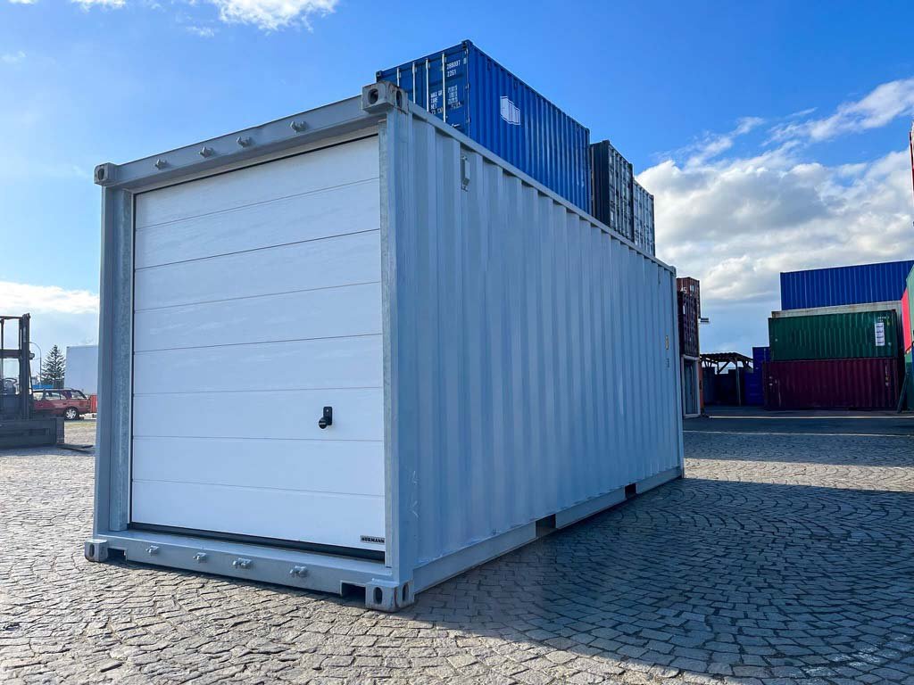 20ft Containergarage mit Rolltor Sektionaltor Lichtgrau RAL 7040