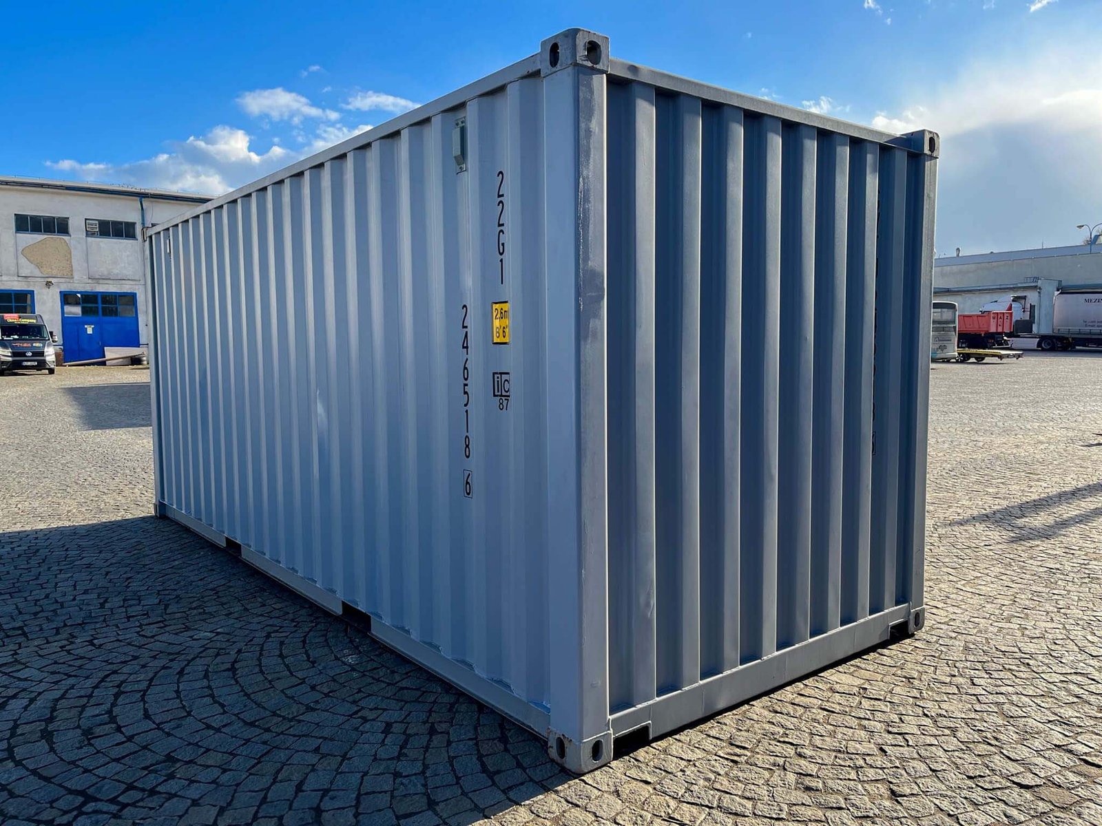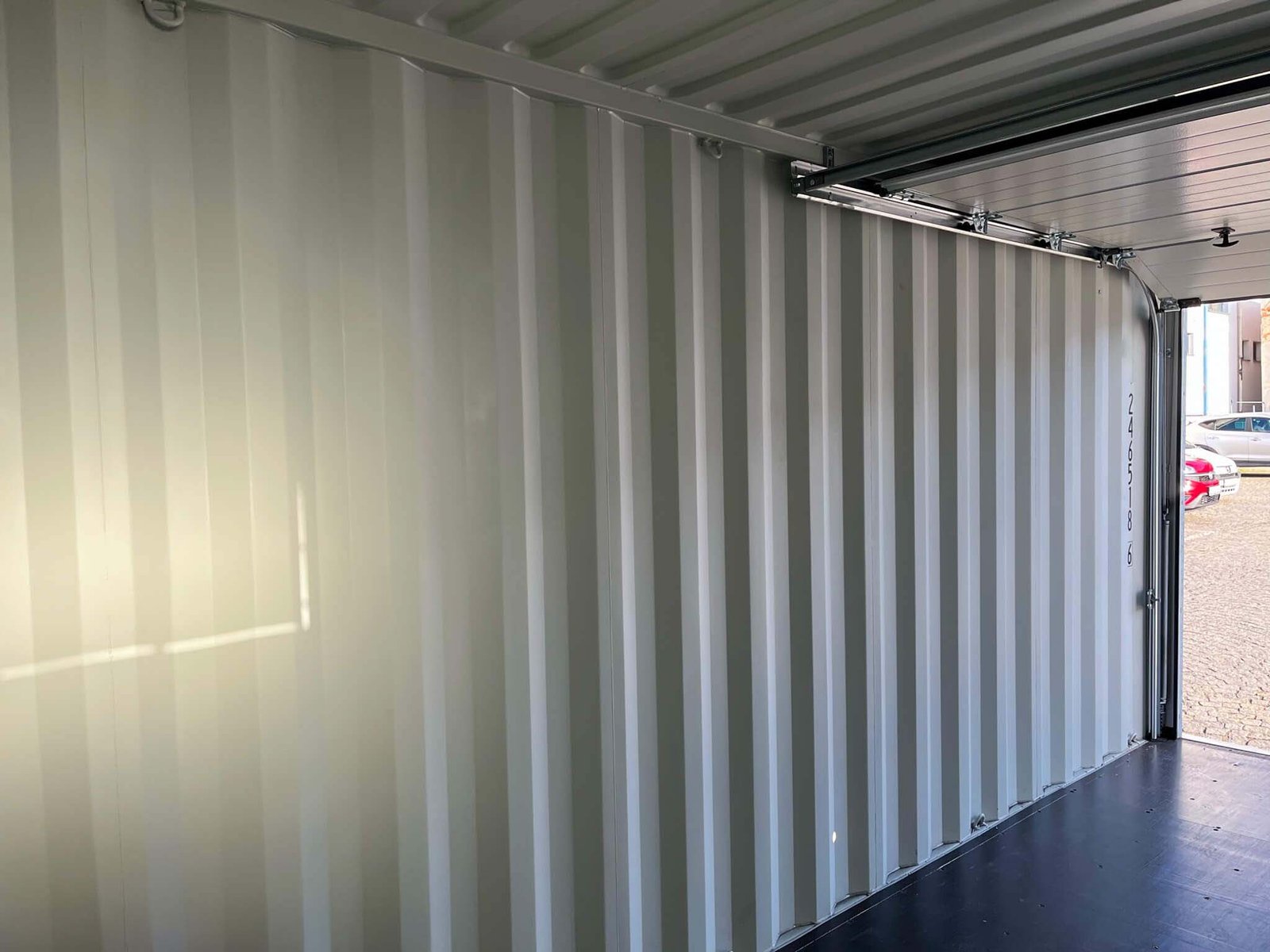 This 20-foot storage container offers an ideal combination of functionality, security, and modern design. The motorized black sectional door allows for space-saving, easy operation and ensures optimal access while maximizing the use of the interior space. With robust, galvanized steel reinforcements, the construction is particularly durable and resistant to external influences.